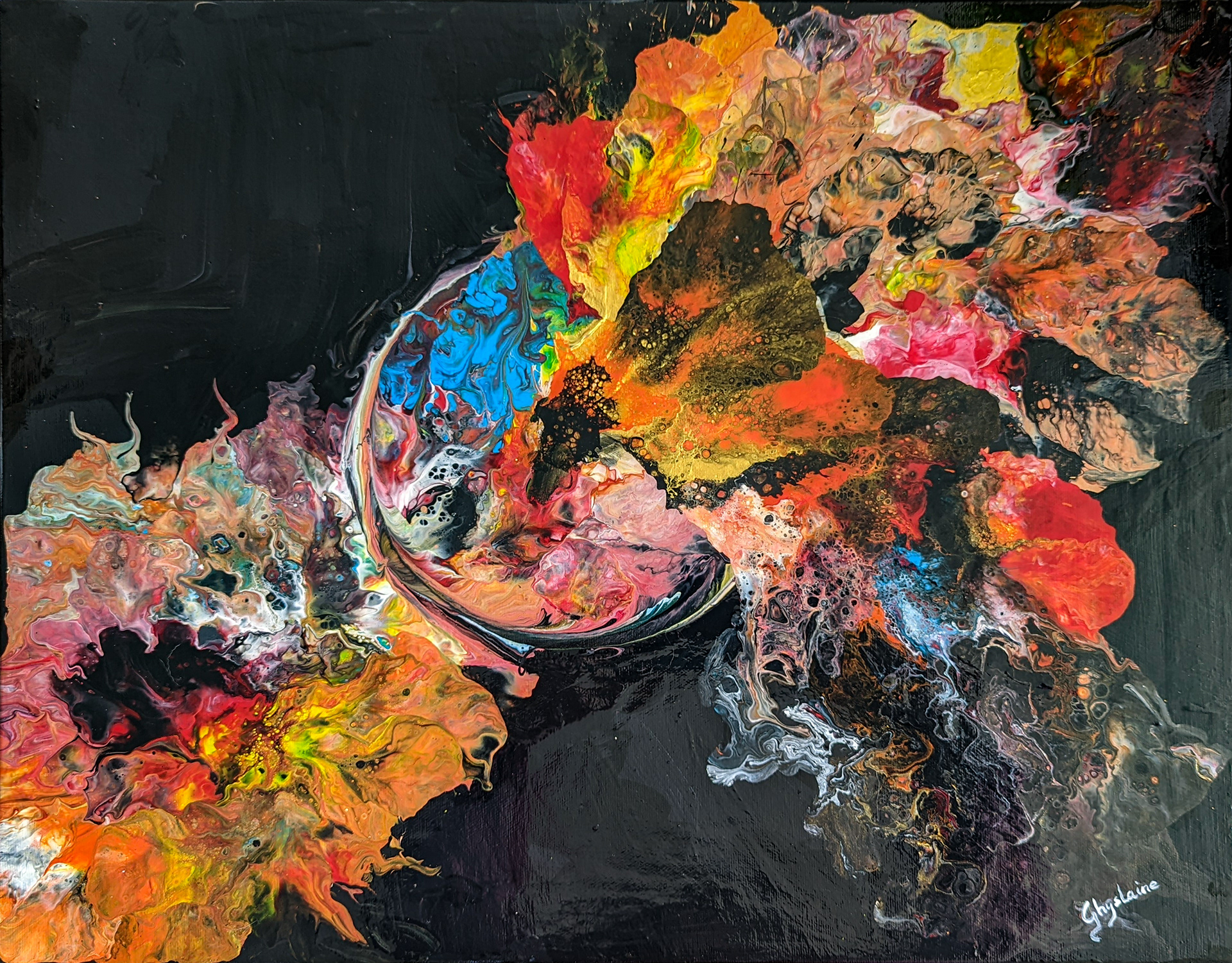 Une éclaboussure de couleur, de la glace passant à travers un cerceau.