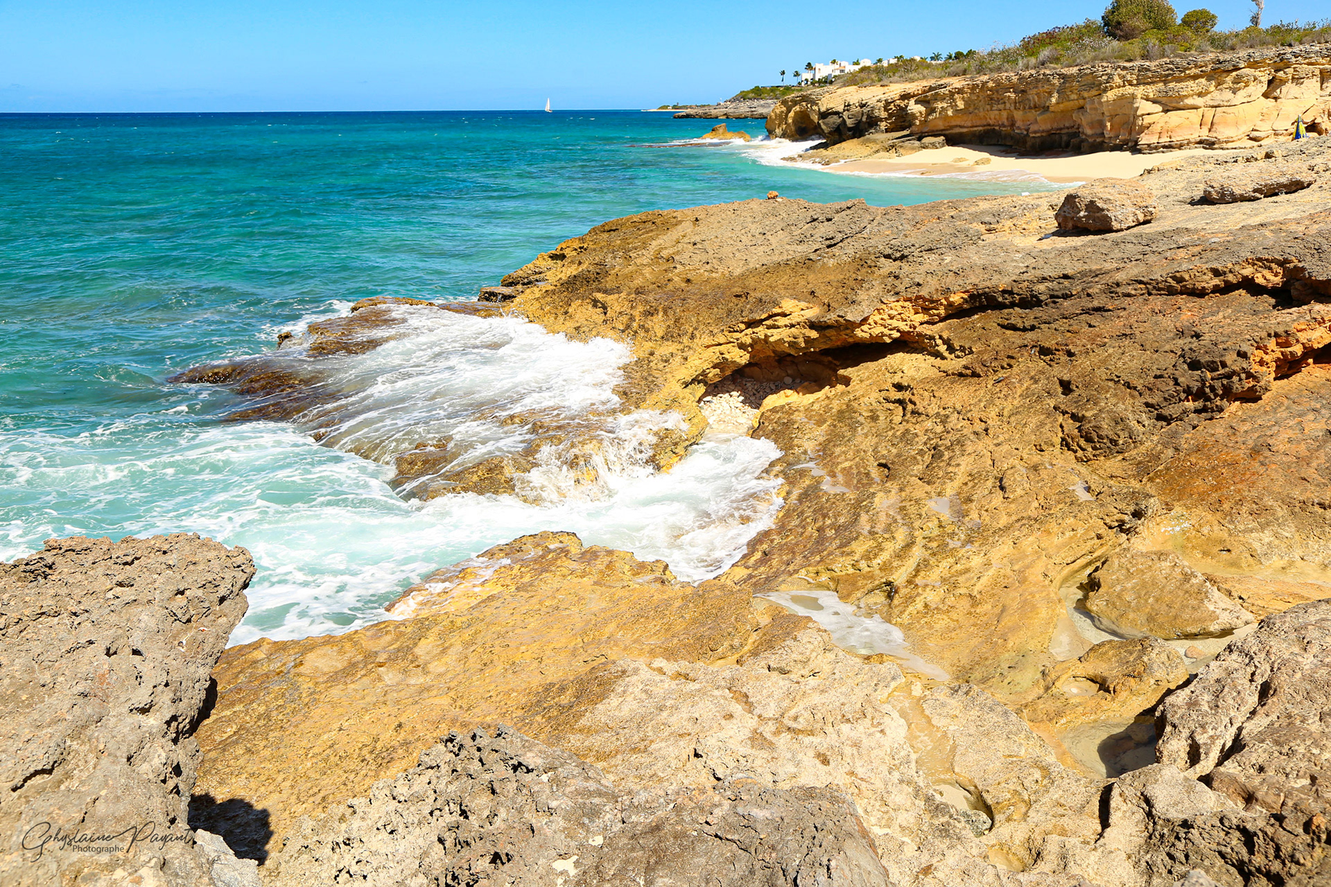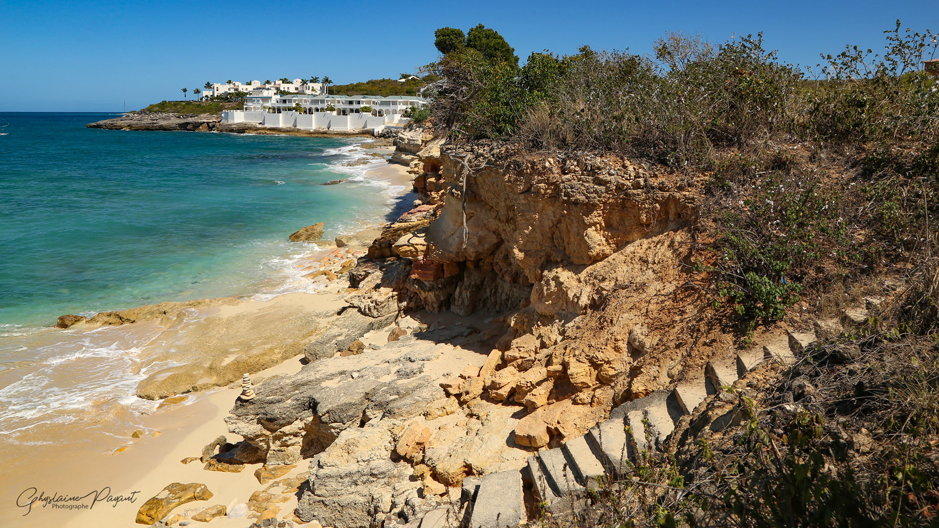 Frontière partie française et hollandaise, Cupecoy, plage de Maho, Baie Orientale